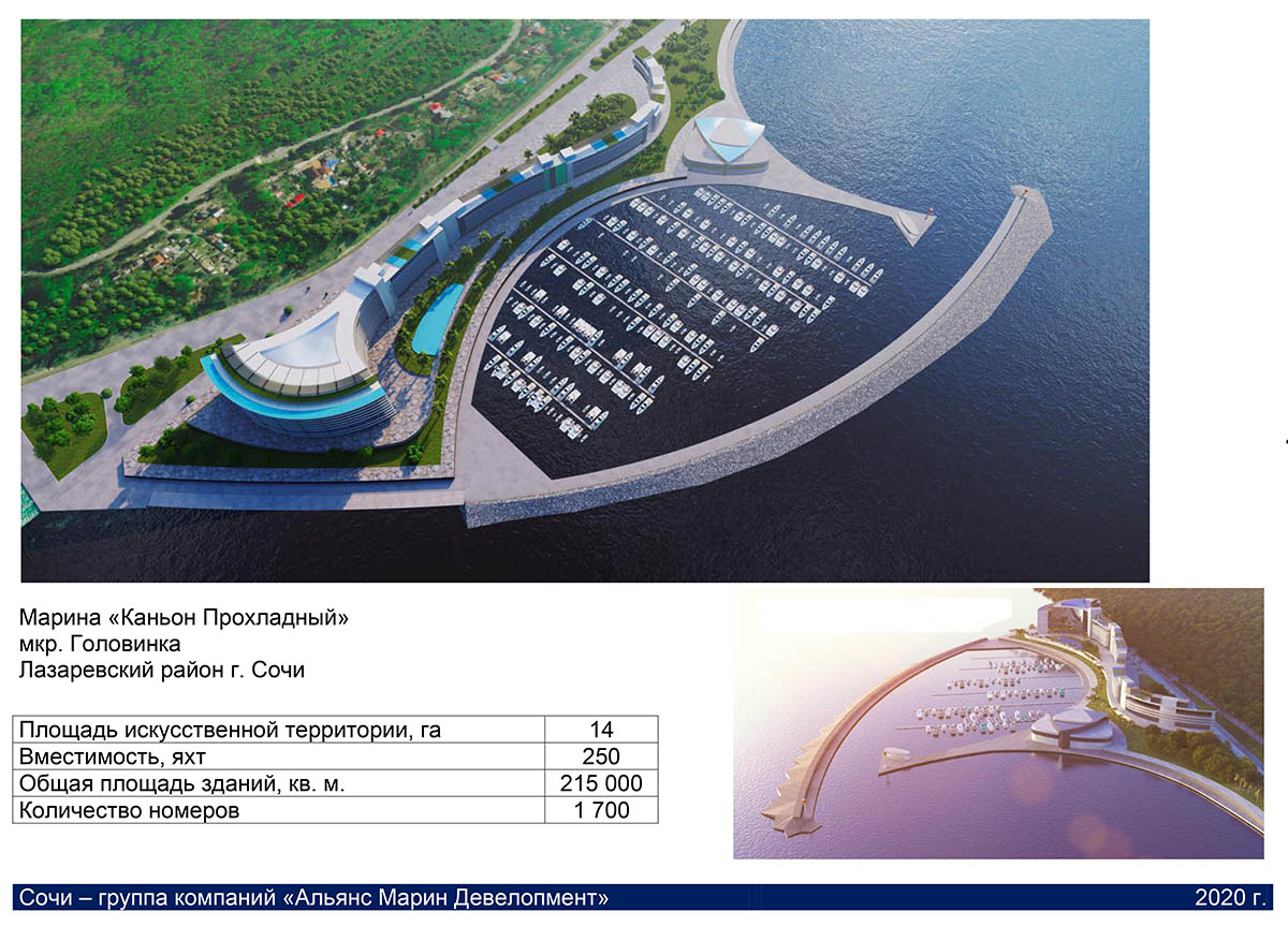 На совещании по вопросу реализации инвестиционных проектов по развитию яхтенного туризма были рекомендованы к реализации несколько пилотных проектов на Черноморском побережье Краснодарского края. Большая часть из них – на побережье города Сочи, это марины «Водопадная» и «Каньон Прохладный», тяготеющие к курортным посёлкам Аше и Головинка Лазаревского района, на которые уже разработаны концепции устойчивого комплексного развития, «Коста марина» в районе Хосты, и самый масштабный из представленных инвестиционных проектов – морской рекреационный комплекс «Южный Риф», расположенный в районе Адлерского железнодорожного вокзала.